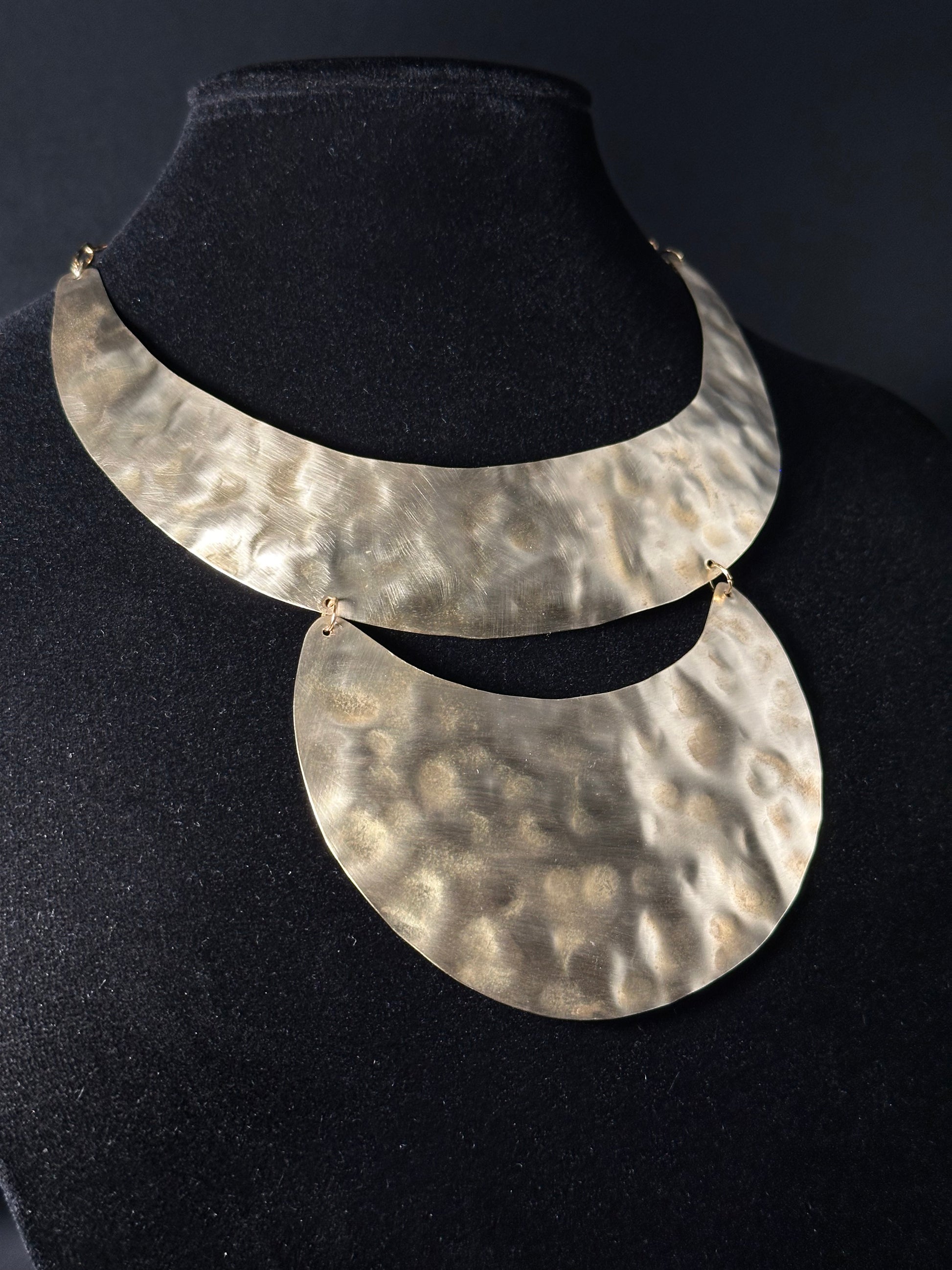 Realizzata a mano con ottone di alta qualità , questa collana incarna forza e bellezza in un equilibrio perfetto. La texture martellata aggiunge profondità e carattere, conferendo al pezzo un fascino unico, quasi primordiale. Leggera e confortevole, è pensata per chi ama accessori che fanno sentire forti e sicuri.