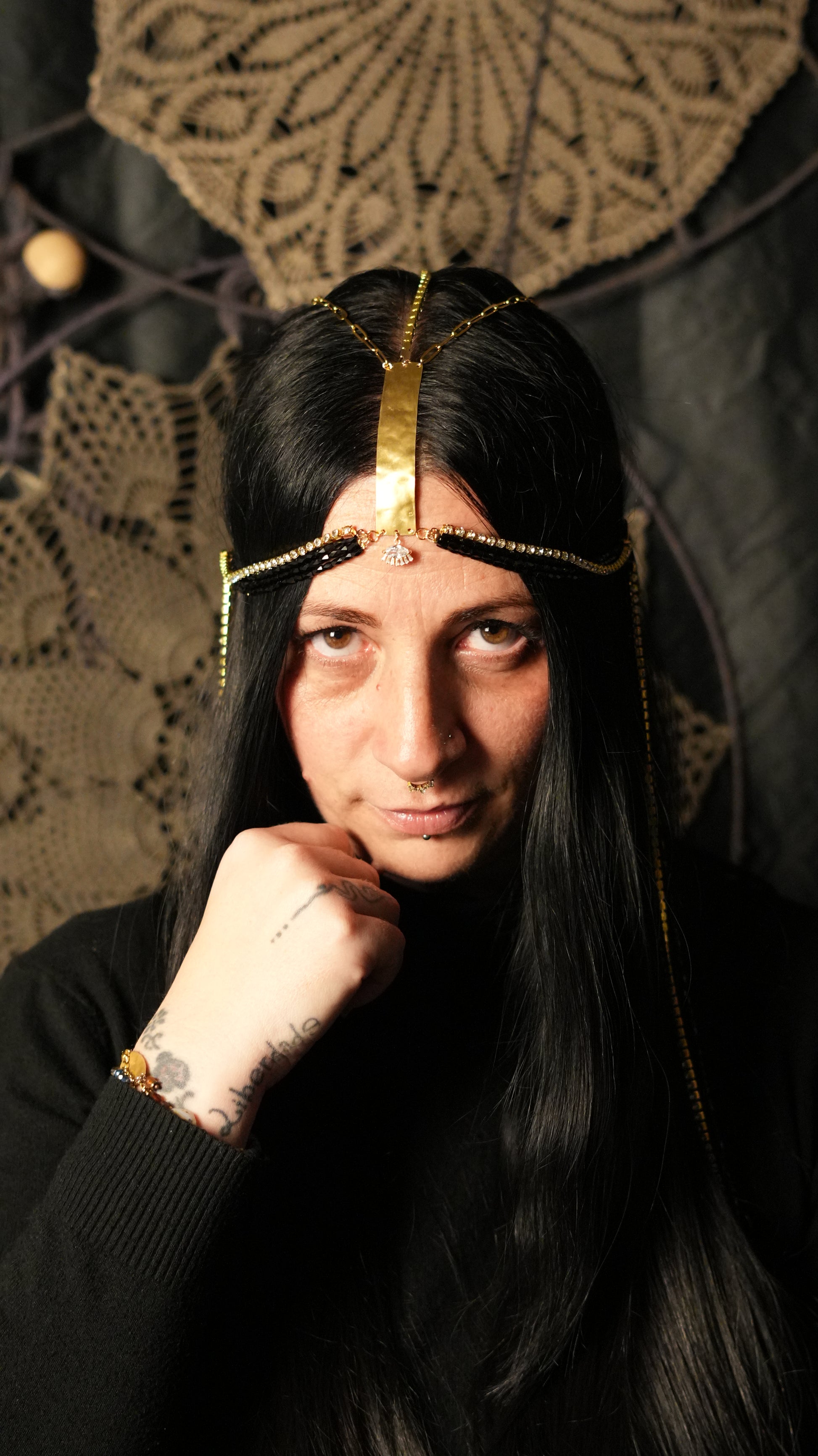 La chiusura regolabile con catene in acciaio color argento garantisce una vestibilità perfetta, adattandosi a diverse acconciature e occasioni.