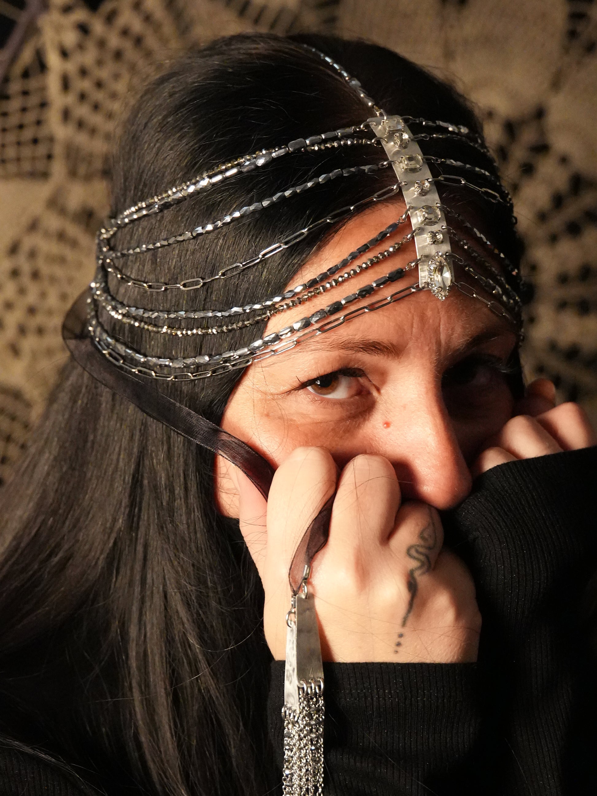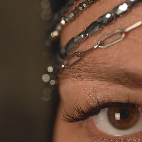 La head chain “Imperial” è un gioiello pensato per trasformare lo sguardo e il portamento di chi lo indossa.