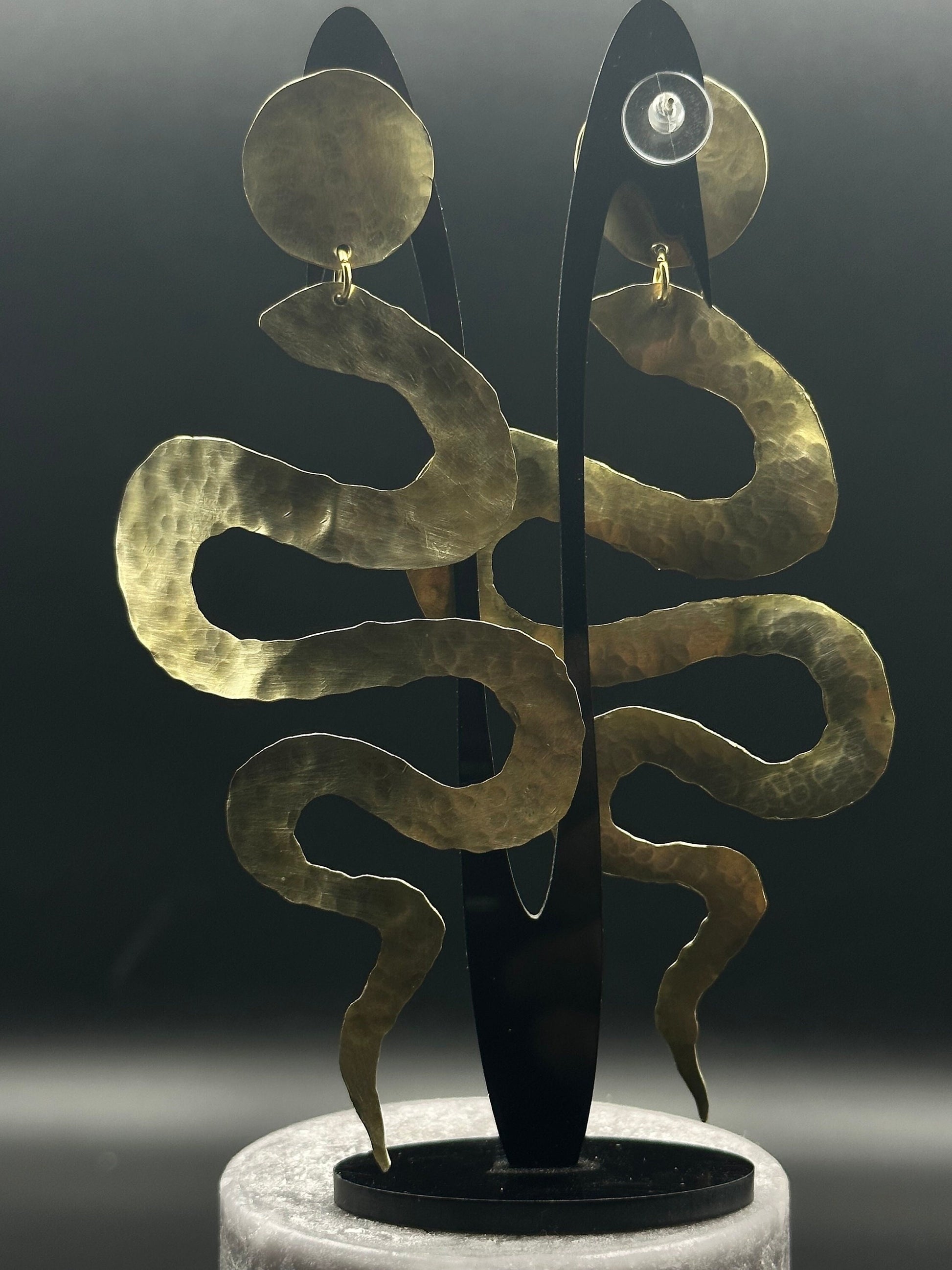 Orecchini a Forma di Serpente, Handmade, Ottone, Made in Italy, Eleganza, Gioielli Unici, Stile Distinto, Accessorio Seducente.