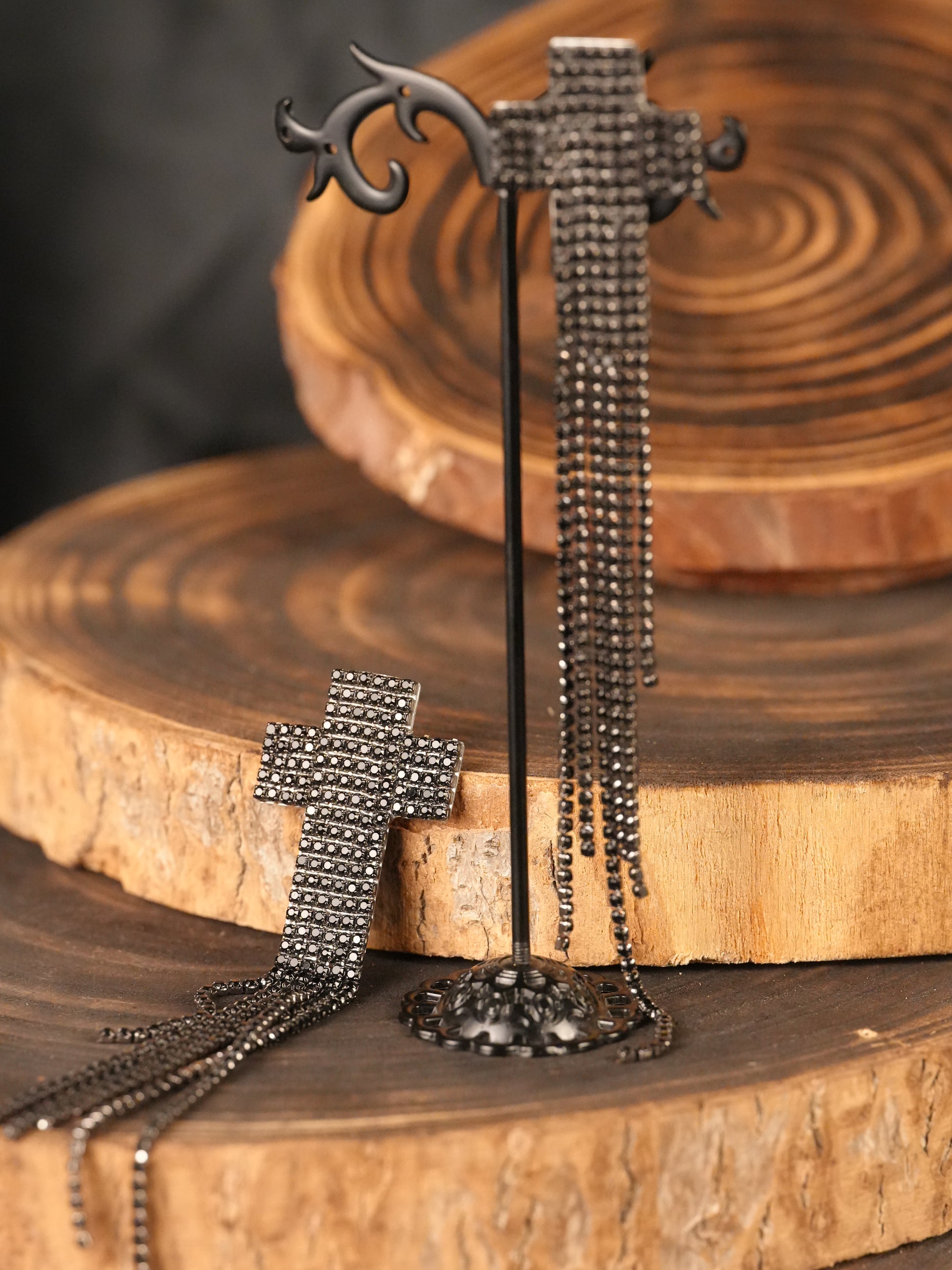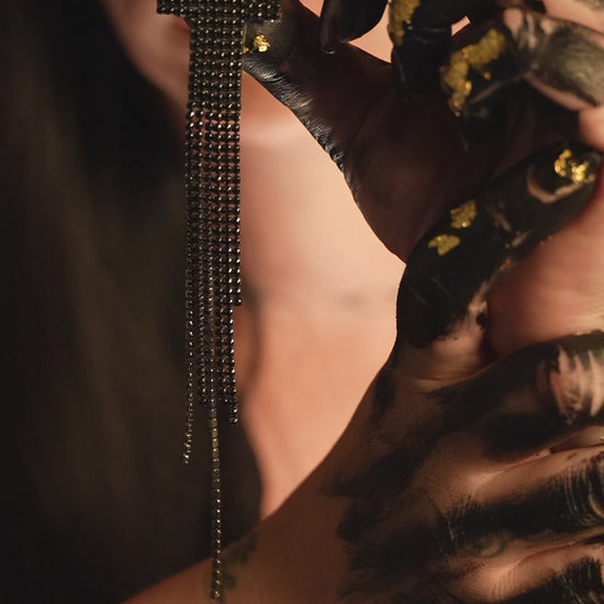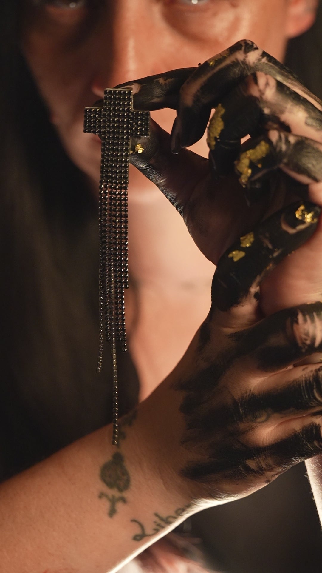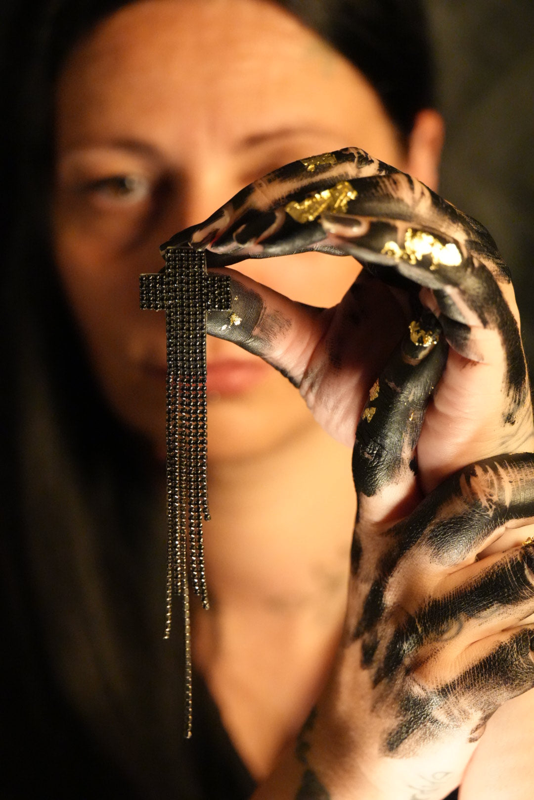 Questi orecchini a croce sono realizzati interamente a mano, con una base in alluminio e ganci in acciaio anallergico. Sono lunghi 16 cm nel punto massimo, larghi 3 cm, ma non lasciarti ingannare dalle dimensioni: ogni pezzo pesa solo 7,5 grammi. Estremamente leggeri, pensati per chi ama accessori scenografici senza rinunciare al comfort.