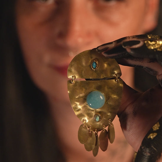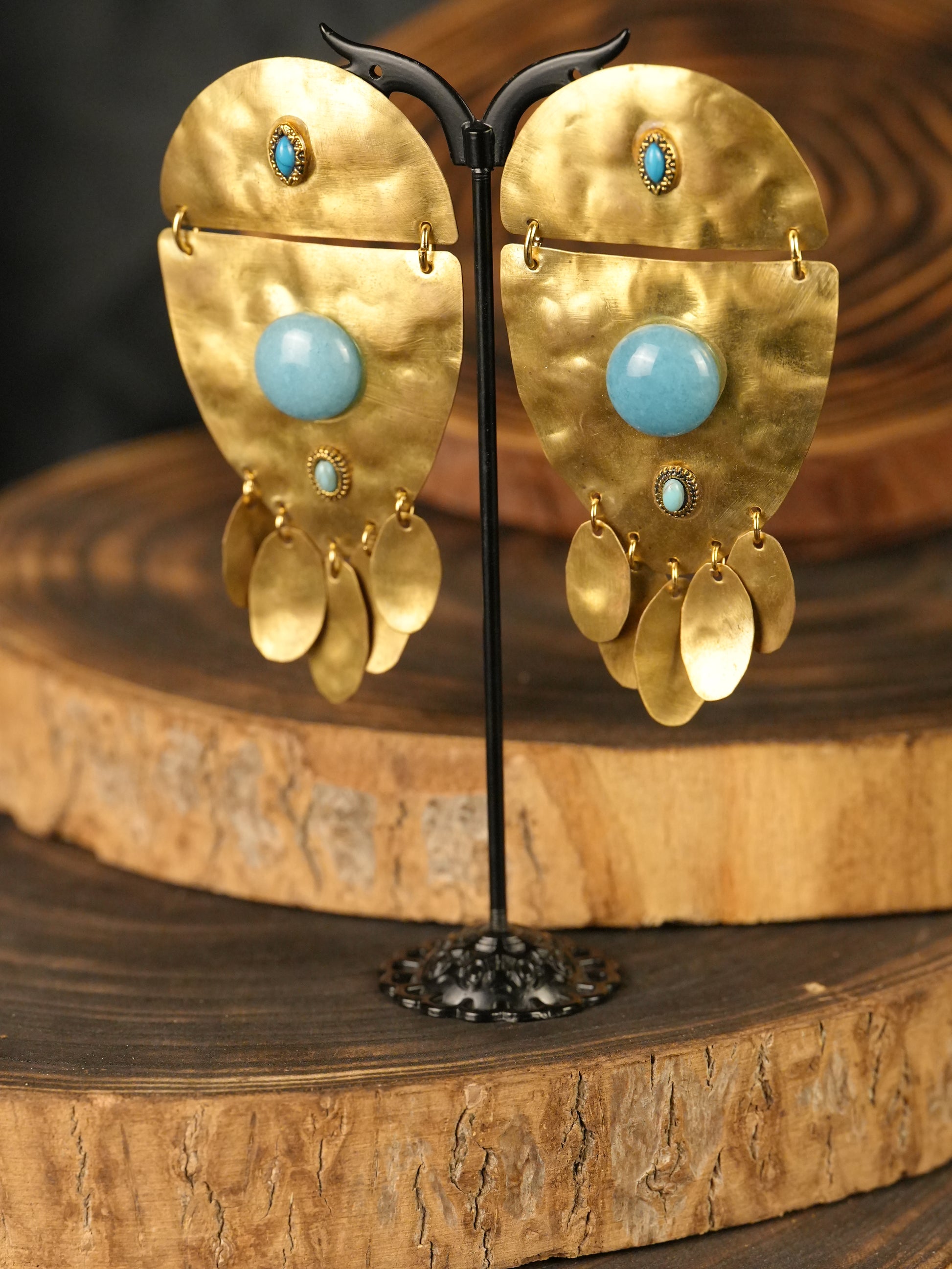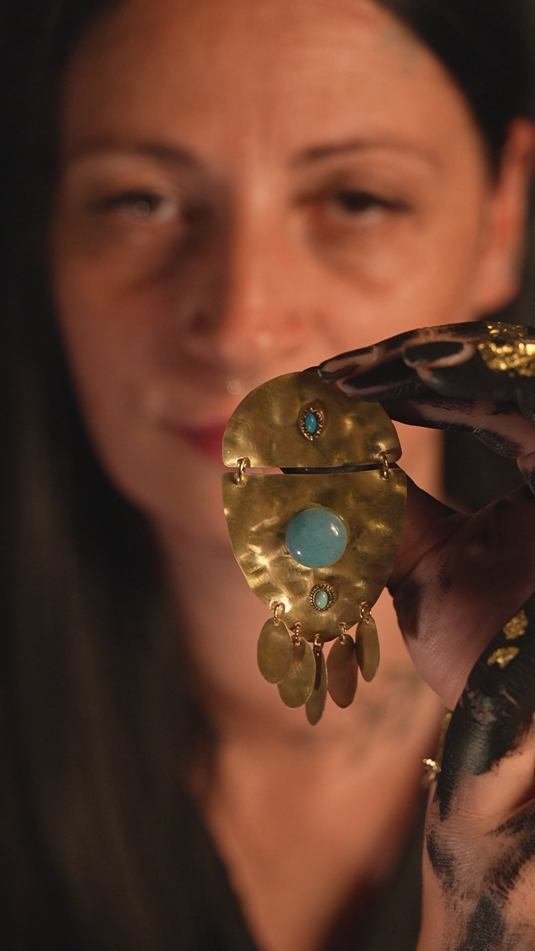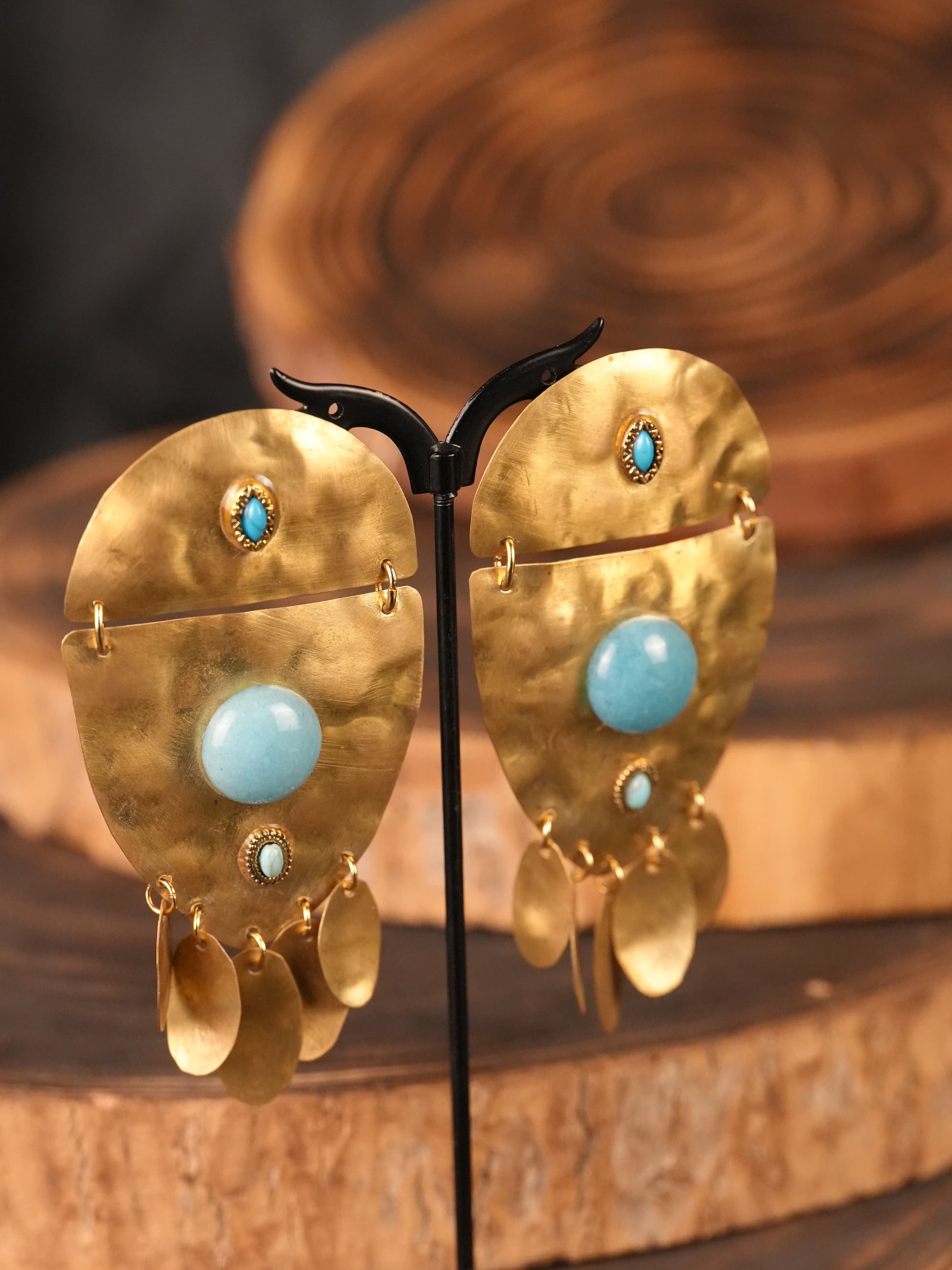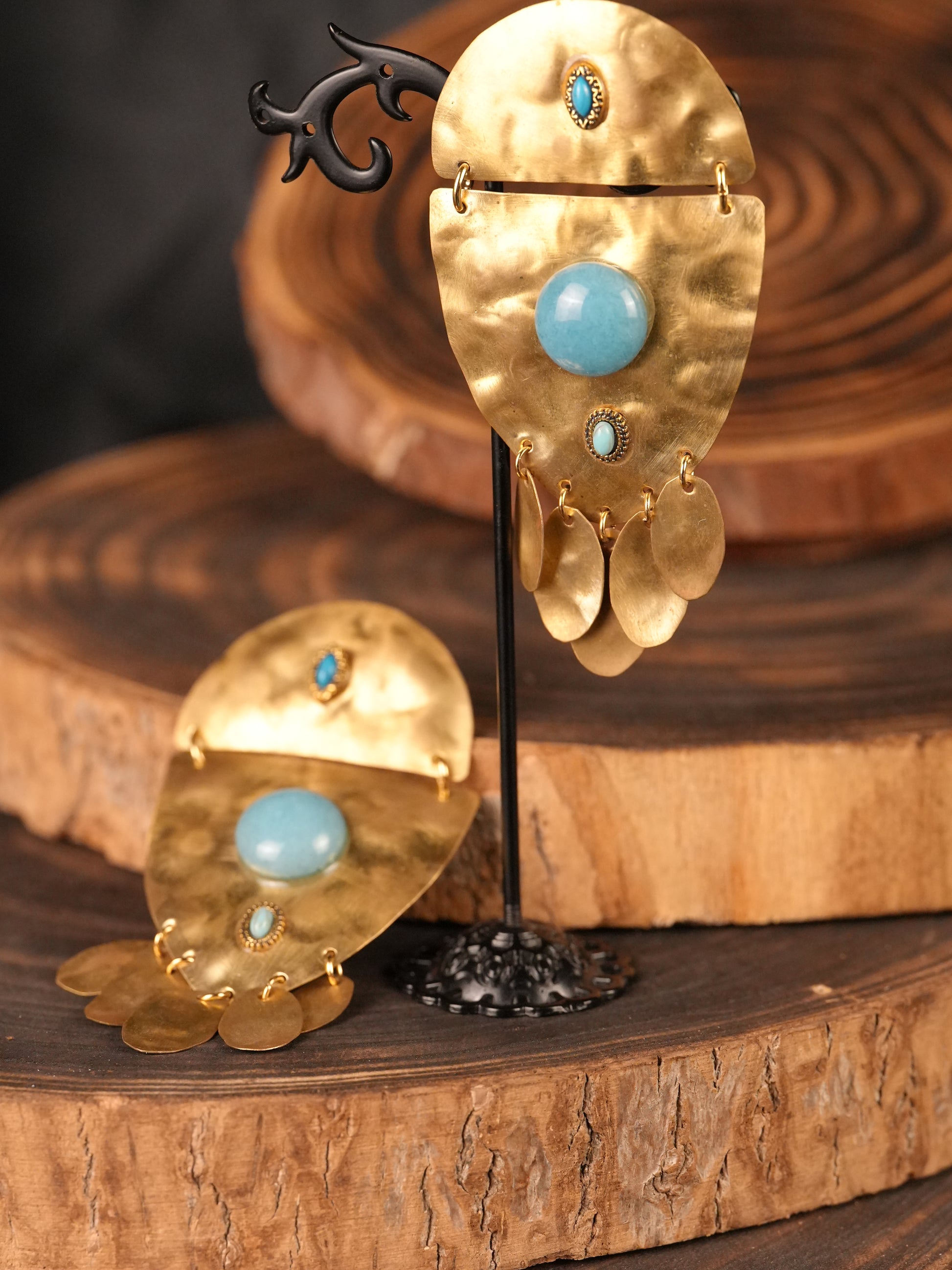 Lasciati conquistare dall’eleganza senza tempo di questi orecchini artigianali in ottone, arricchiti da dettagli in pasta di turchese.